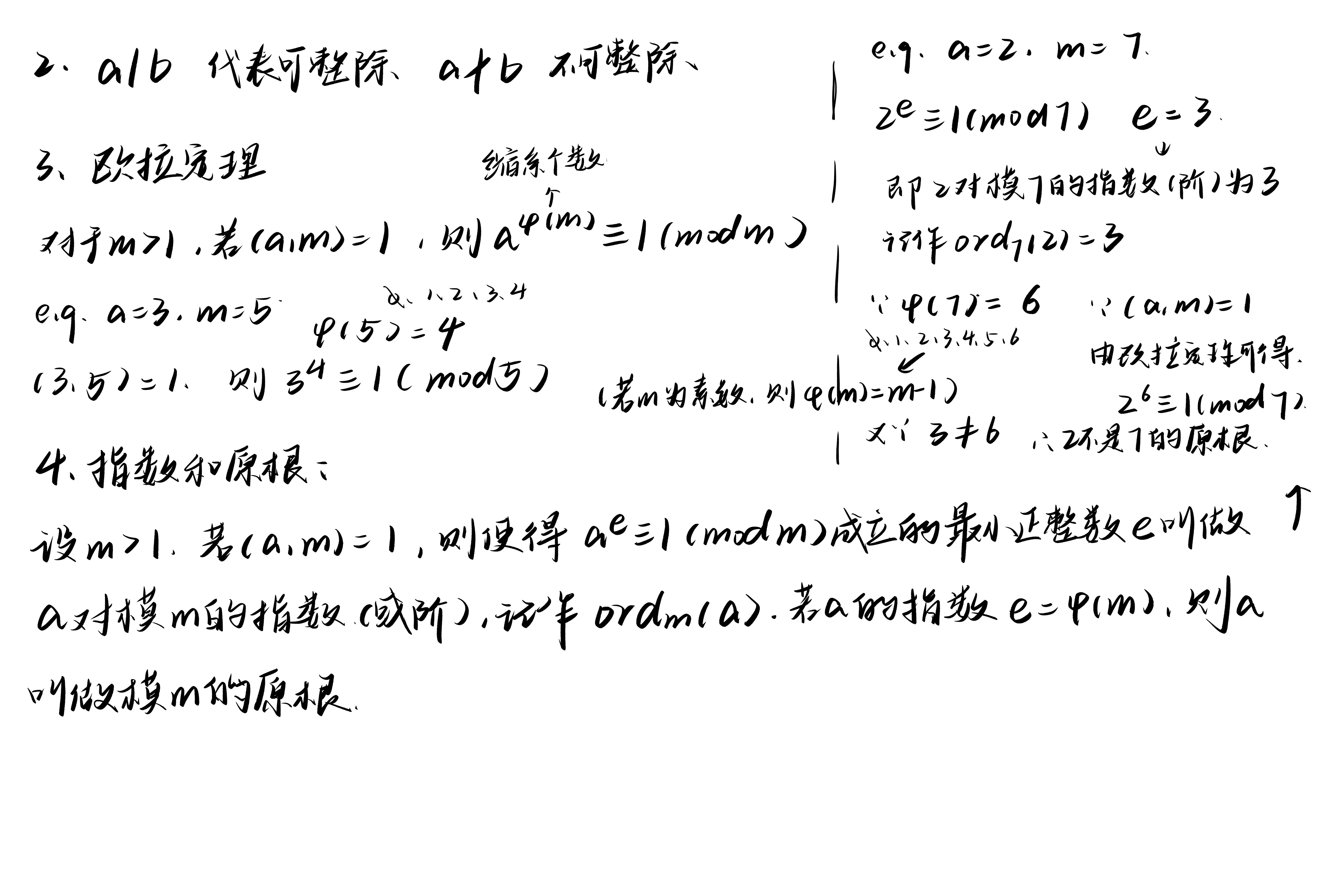 欧拉定理、指数和原根#