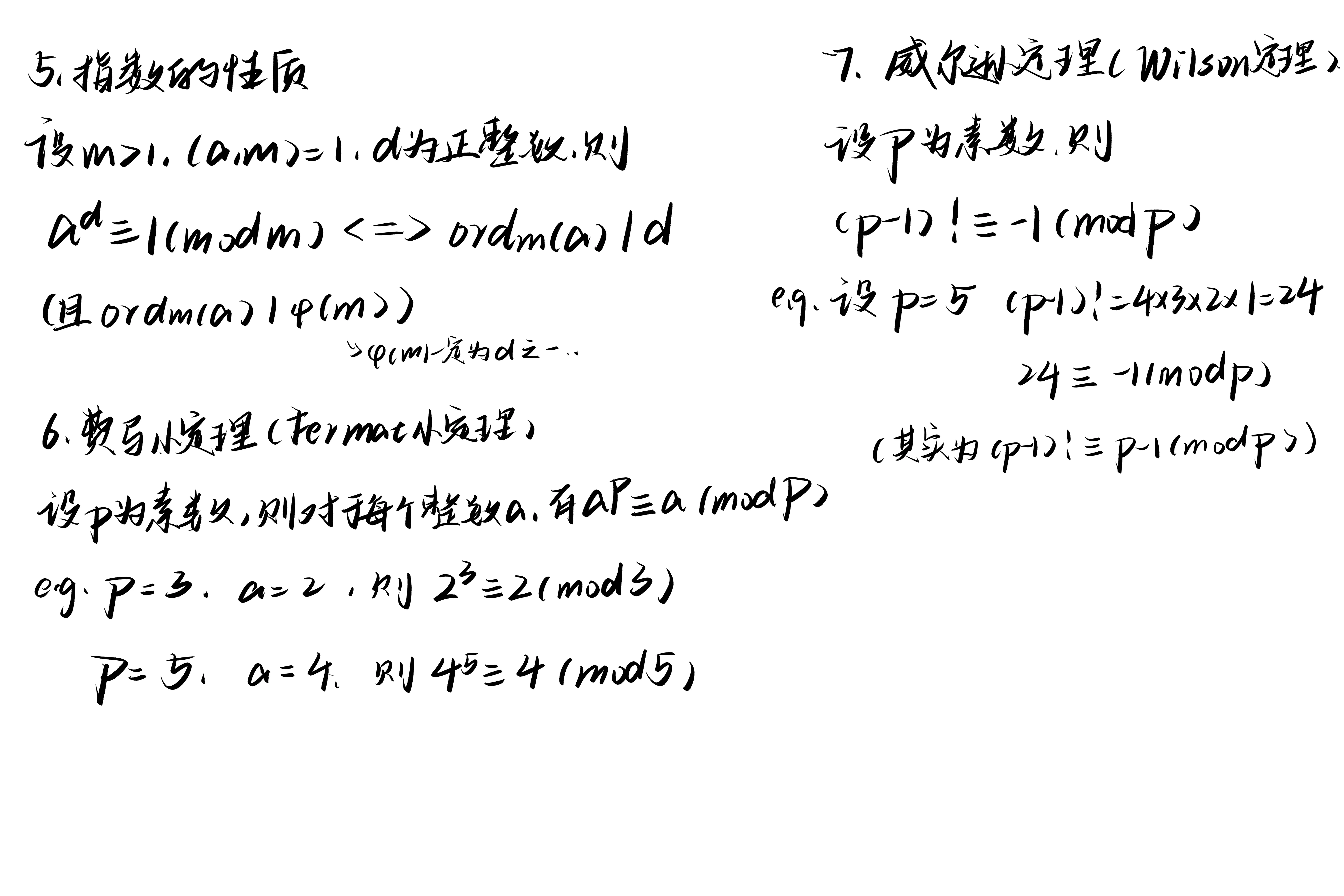 指数的性质、费马小定理、威尔逊定理#